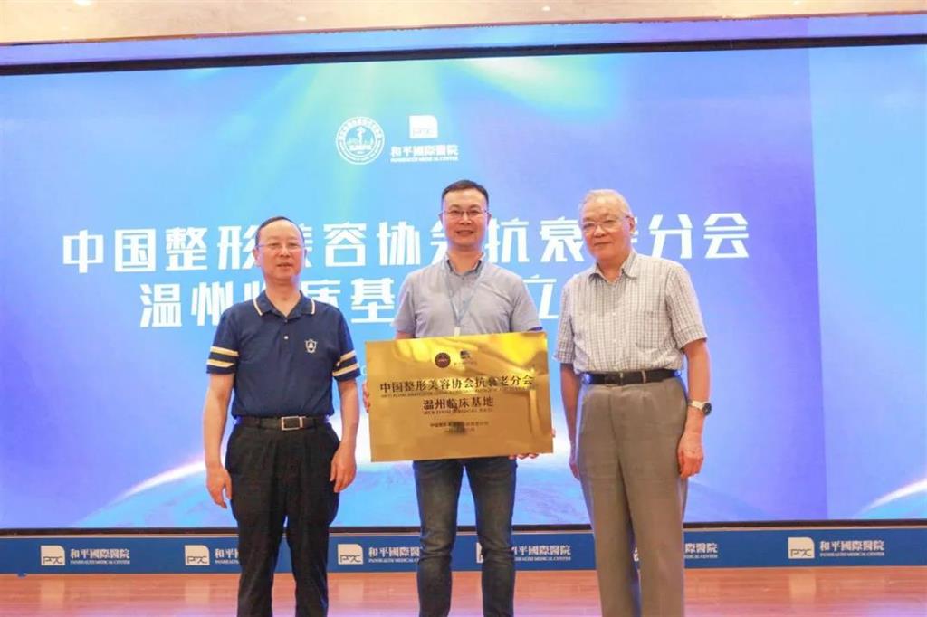 會(huì)上,和平國(guó)際醫(yī)院被設(shè)立為“中國(guó)整形美容協(xié)會(huì)抗衰老分會(huì)溫州臨床基地”。同時(shí),馬奇教授、趙啟明主任等專家共同見(jiàn)證了“和平國(guó)際醫(yī)院抗衰老中心”的揭牌儀式。