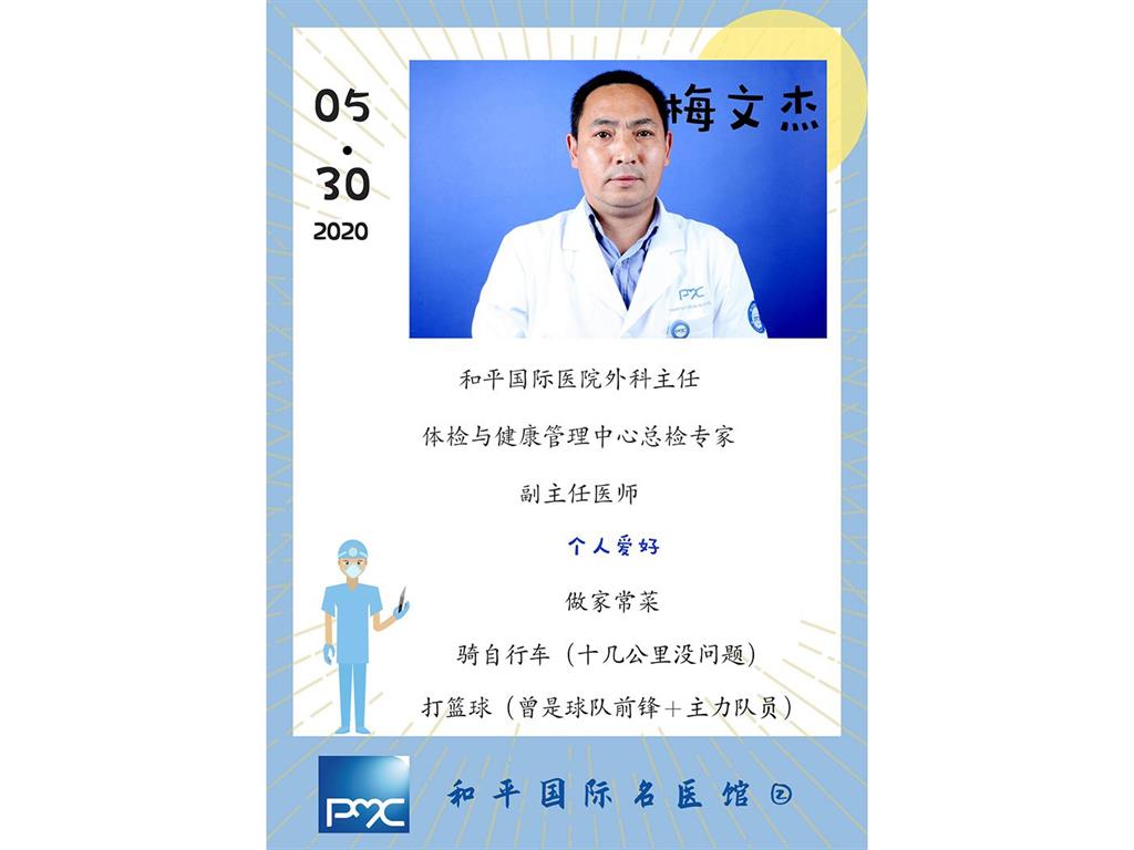 在和平國際醫(yī)院體檢與健康管理中心,與梅文杰搭檔的護士認為他非常幽默,和平時在手術臺上不言茍笑的樣子有很大區(qū)別,“梅醫(yī)生在體檢這邊話挺多的,而且自帶笑點。”