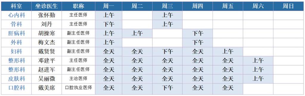 名醫(yī)館坐診一覽表