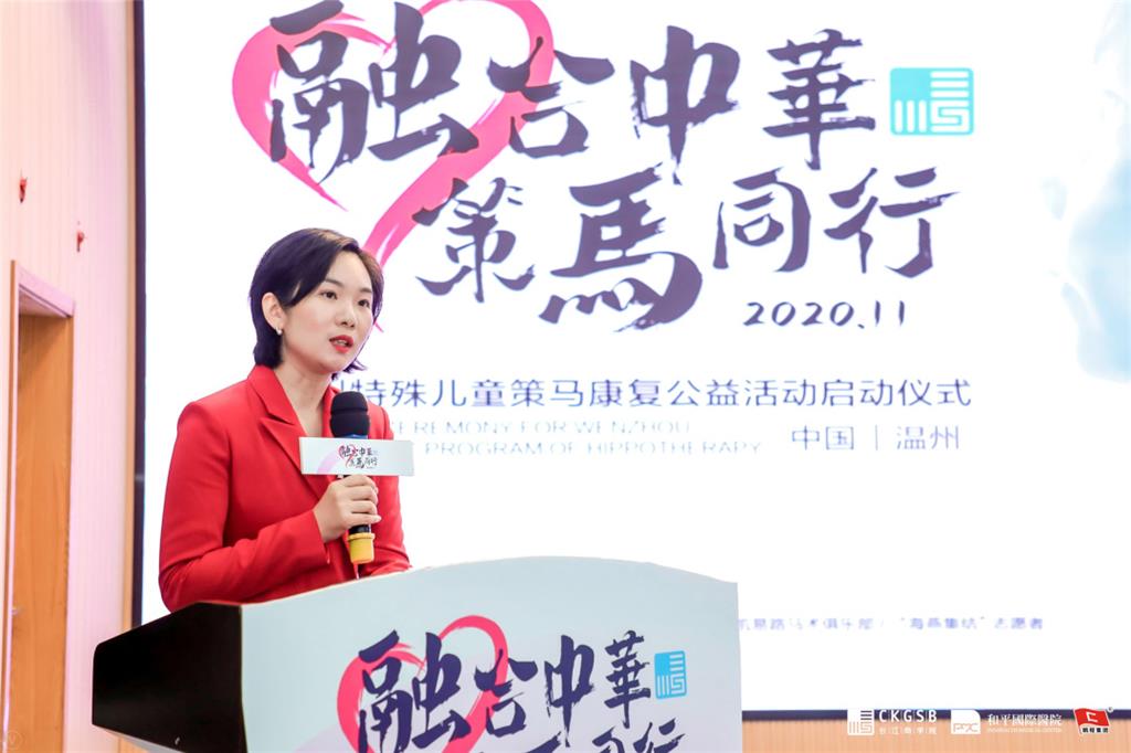 溫州市特殊教育學校校長李科、溫州市僑聯(lián)副主席翁蔡恩、長江商學院EMBA27期1班同學代表&中國首位完攀14座世界級海拔8000米+高峰的女性登山家羅靜分別致辭,溫州市僑聯(lián)常委、市留聯(lián)會會長盧瓊主持活動。