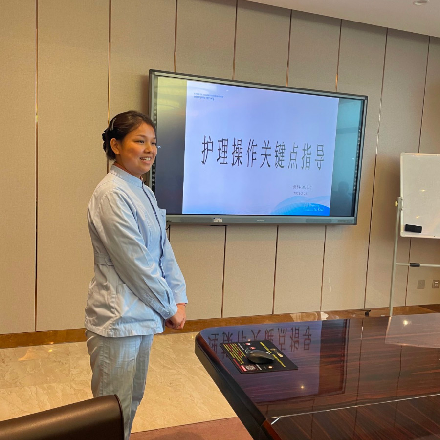 在培訓(xùn)會(huì)上,和平國際副院長陳愛華、院感科科長周丹、客服部主任方祺、護(hù)師謝玲玲講授了專業(yè)的護(hù)理內(nèi)容。