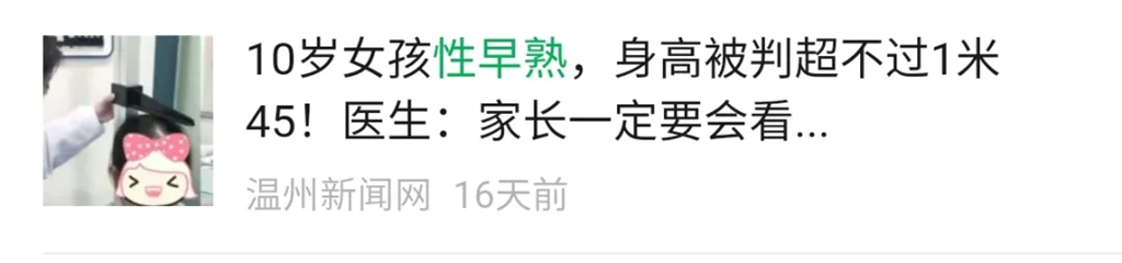 當孩子過早地開始發(fā)育時,身體中的性激素會使骨骼成熟加快,使骨骺端提前閉合,骨齡持續(xù)性超前。使得孩子在后期的生長發(fā)育過程中身高增長緩慢,至成年時期大多矮于常人。