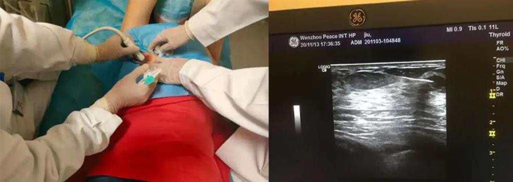 然后,完善頸部超聲檢查,以明確腫物是否在甲狀腺內(nèi),并判斷結(jié)節(jié)的形態(tài)、大小、數(shù)目、囊實性、血流情況、結(jié)節(jié)與周邊組織的關系,以及頸部淋巴結(jié)的腫大情況。必要時需要在超聲引導下甲狀腺細針穿刺活檢以判別結(jié)節(jié)的良惡性。