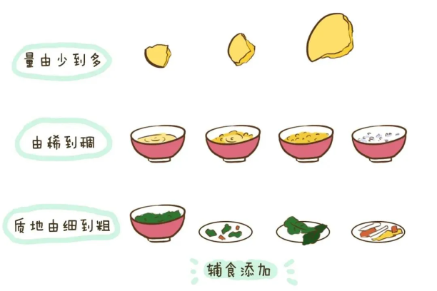 建議每天以母乳或配方粉為主,輔食添加的時(shí)間可以是兩頓奶之間。寶寶的第一口輔食建議是富含鐵的食物。這些輔食注意優(yōu)先添加,由少到多,并注意嘗試蔬菜、水果等,以免膳食纖維攝入不足,而導(dǎo)致寶寶排便困難。