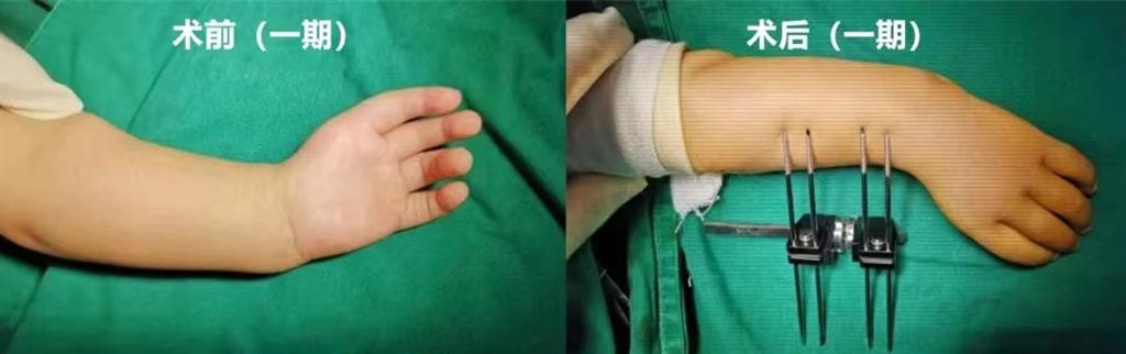 和平國(guó)際醫(yī)院副院長(zhǎng)、創(chuàng)傷創(chuàng)面修復(fù)科專家周健表示,像這種手臂和手指的畸形情況在國(guó)內(nèi)比較少見(jiàn),手術(shù)難度大。為確保手術(shù)圓滿完成,醫(yī)院特別邀請(qǐng)國(guó)內(nèi)權(quán)威專家華山醫(yī)院方有生教授,并制定了詳細(xì)的一期、二期手術(shù)方案。