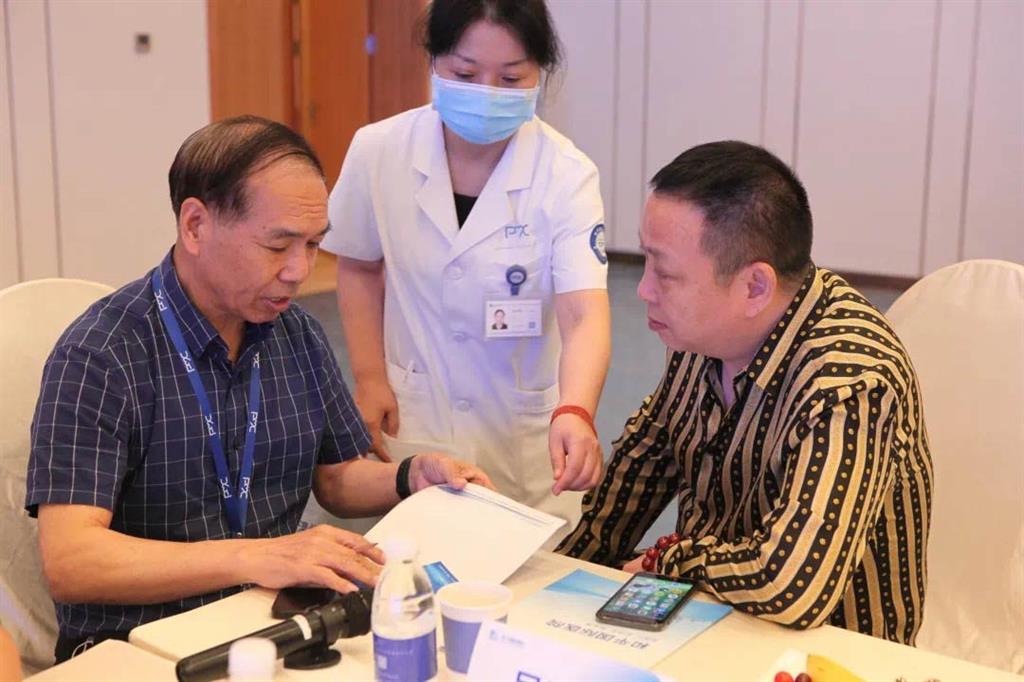 在活動現(xiàn)場,溫州和平國際醫(yī)院院長顧問、主任醫(yī)師、大內(nèi)科主任張懷勤教授也來到現(xiàn)場,與僑胞企業(yè)家面對面交流,企業(yè)家們紛紛拿出早已準(zhǔn)備好的病例報(bào)告單、影像片進(jìn)行咨詢。