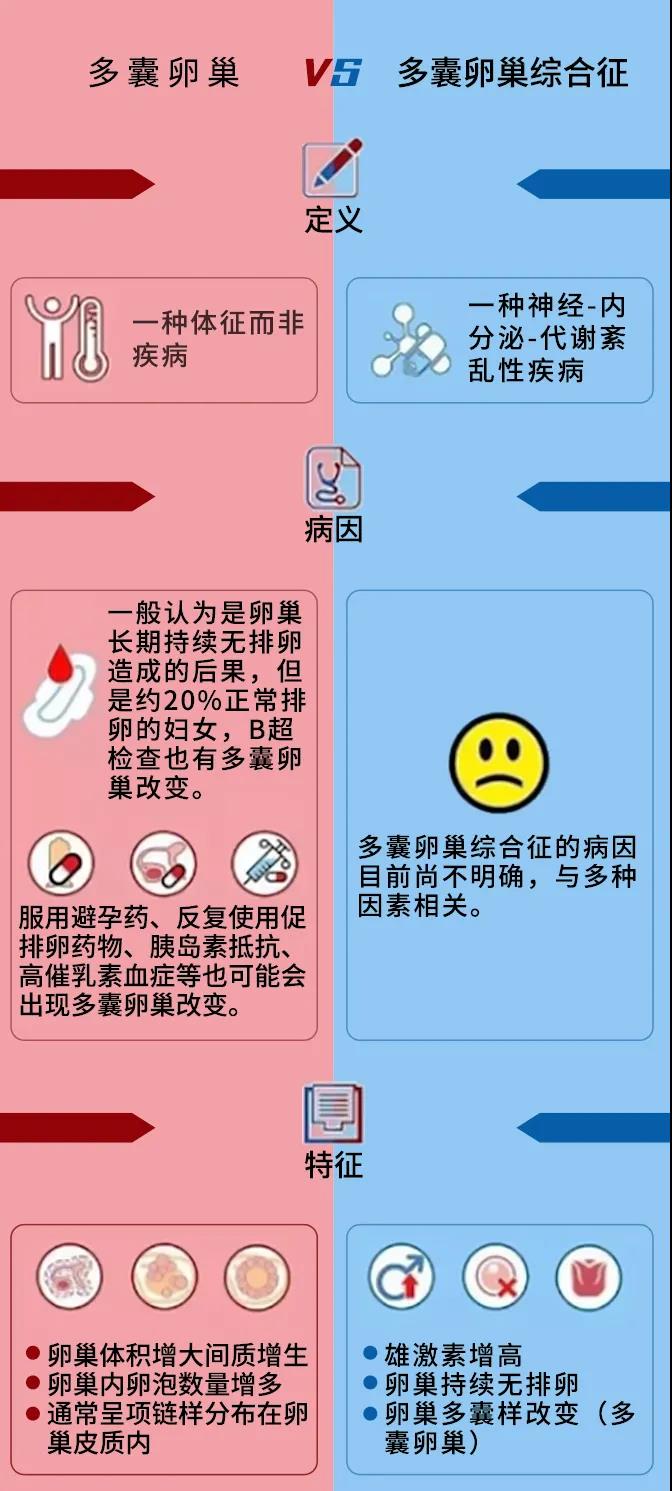 除了上述臨床表現(xiàn),醫(yī)生還會借助一些輔助檢查,來最終判斷是否患有多囊卵巢綜合征,比如血清檢測(內(nèi)分泌測定)、B超檢查等。如果體檢的時候,被告知多囊卵巢樣改變,不要怕,這不等于多囊卵巢綜合征。那么,多囊卵巢和多囊卵巢綜合征是什么關(guān)系呢?多囊卵巢綜合征的診斷標準是:月經(jīng)稀發(fā)、閉經(jīng)或不規(guī)則子宮出血,出現(xiàn)高雄激素的臨床表現(xiàn)(比如多毛、痤瘡、肥胖等)或者超聲提示卵巢多囊樣改變,同時,需要排除其他可能引起高雄激素血癥和排卵異常的疾病。