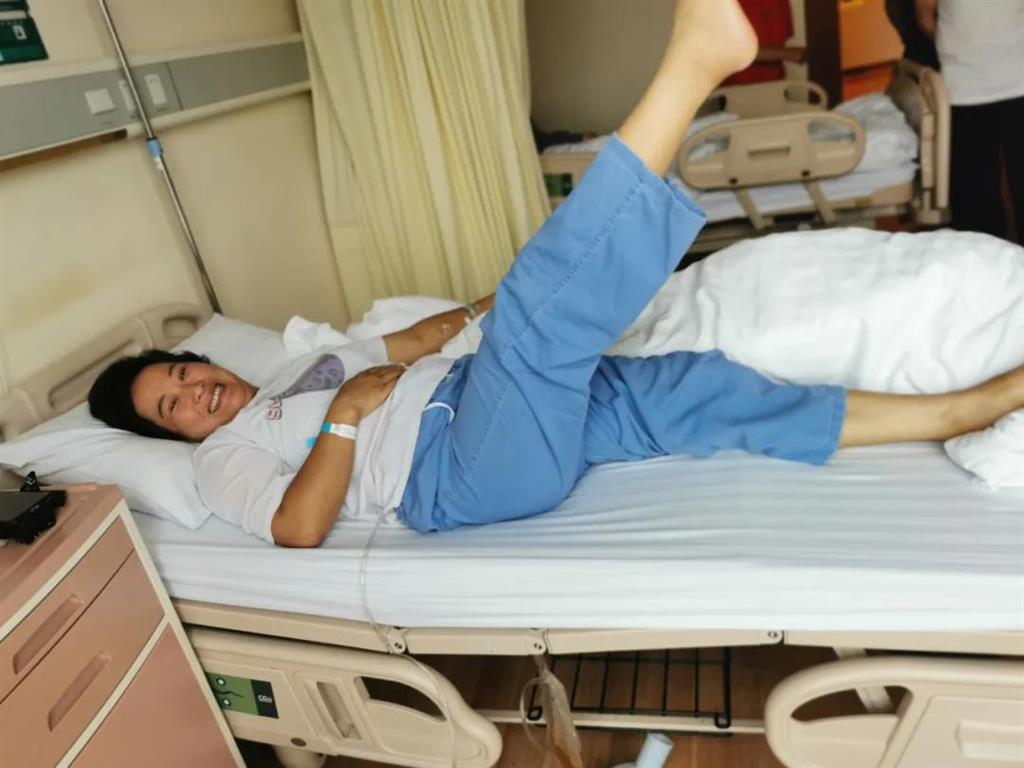 (患者術(shù)后向攝影師開心地展示能夠活動自如的右腿)