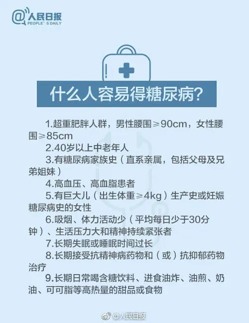 防治糖尿病,最關(guān)鍵的是提高全社會對糖尿病的認知。什么人容易得糖尿病?糖尿病有哪些征兆?怎么做才能遠離糖尿???